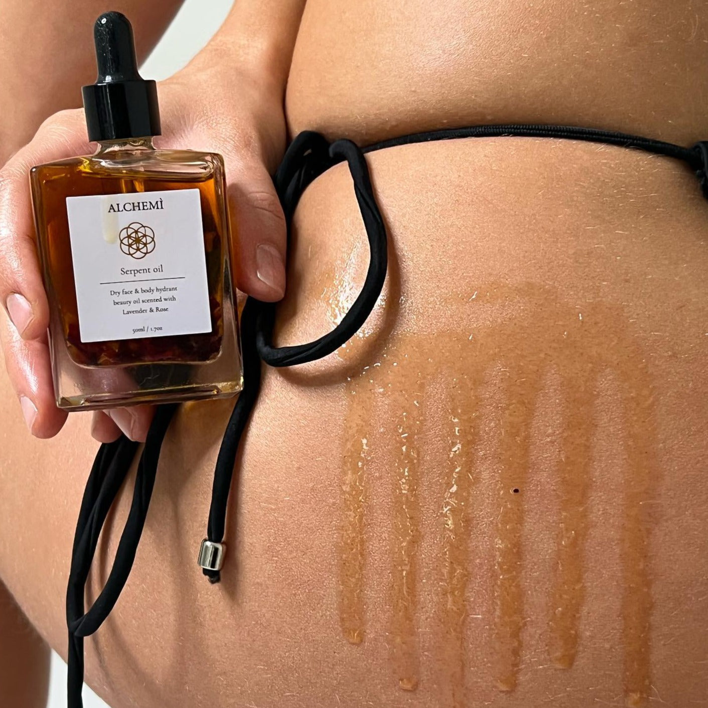 Alchemì skin’s Serpent oil is the perfect addition to any skin care routine, as its multi-faceted functions can drastically assist in wound healing, clearance of skin blemishes & assists with skin care conditions such as eczema, dermatitis & psoriasis.
